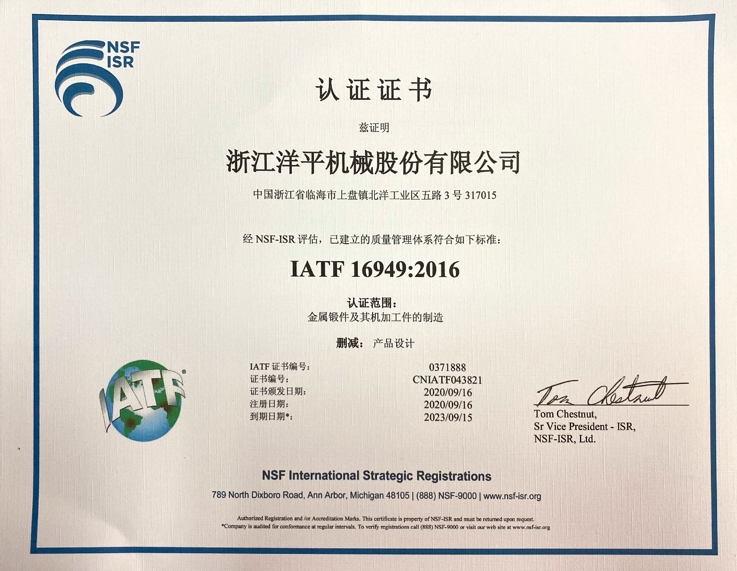公司先后進入汽車和摩托車零部件行業(yè),并取得IATF16949體系認證,
