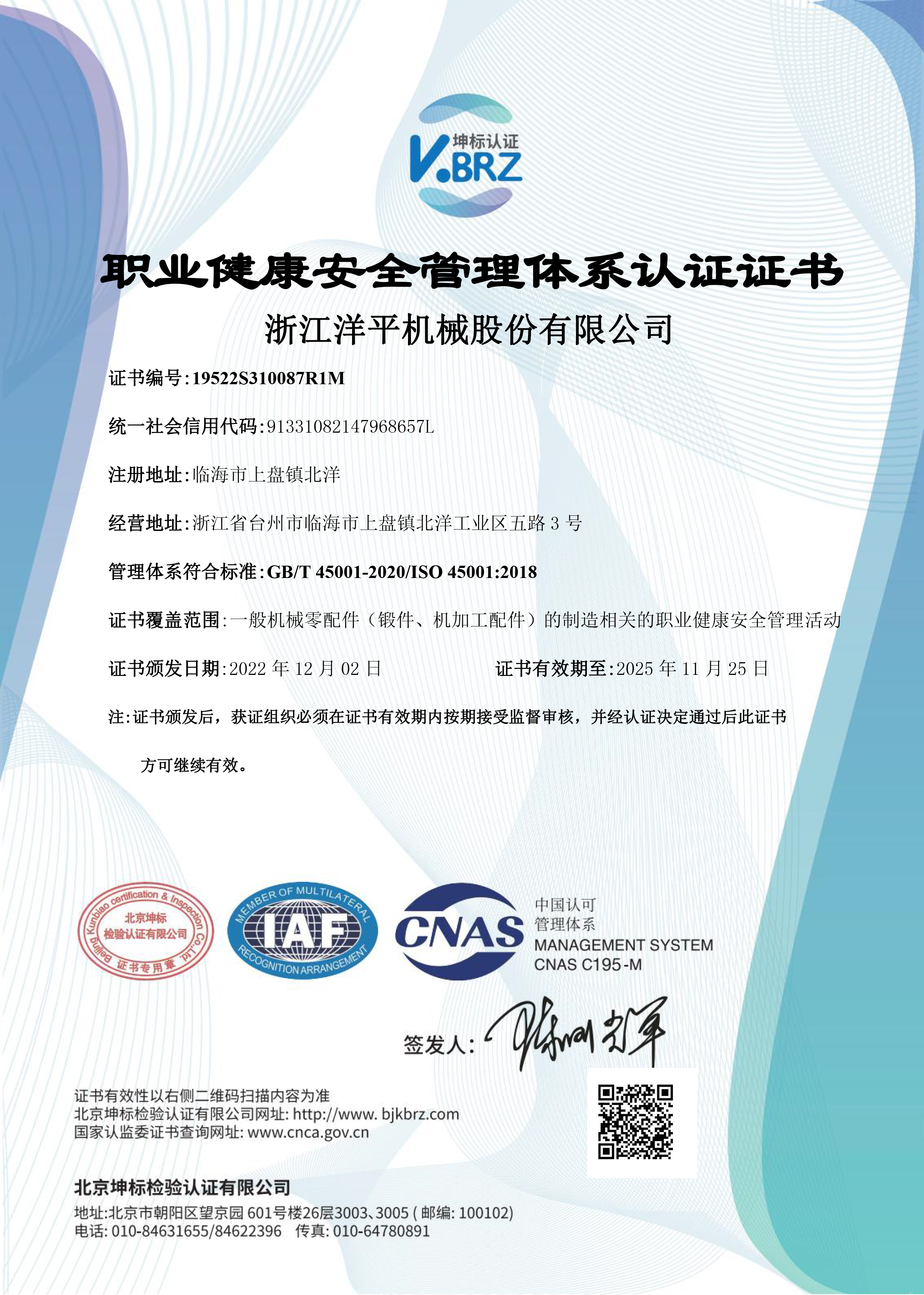 洋平機械一貫堅持“品質(zhì)至堅、服務至誠”的經(jīng)營理念,通過ISO質(zhì)量管理體系認證、職業(yè)健康安全管理體系認證證