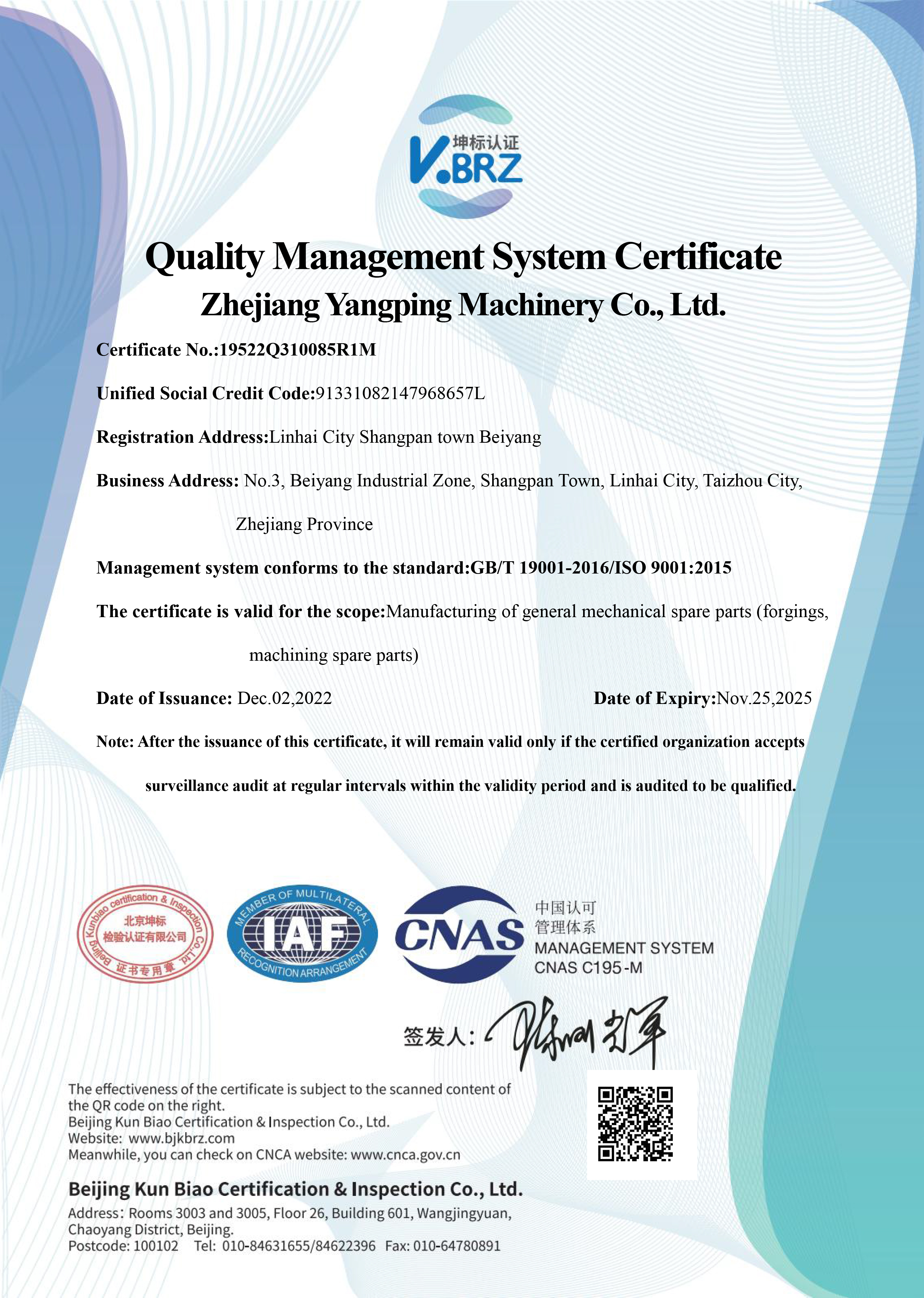 Zhejiang Yangping Machinery Co., Ltd. currently covers an area of 300000 square meters and has more than 300 employees, including more than 50 management and technical personnel, with an annual output value of more than 100 million yuan. At present, the company has passed the ISO-9001 quality management system ISO-TS16949 automobile quality system certification, and has various detection equipment, such as three coordinates, spectrometer, projector, hardness tester, tensile testing machine, etc, To ensure the mechanical properties and quality requirements of products by precise means.
